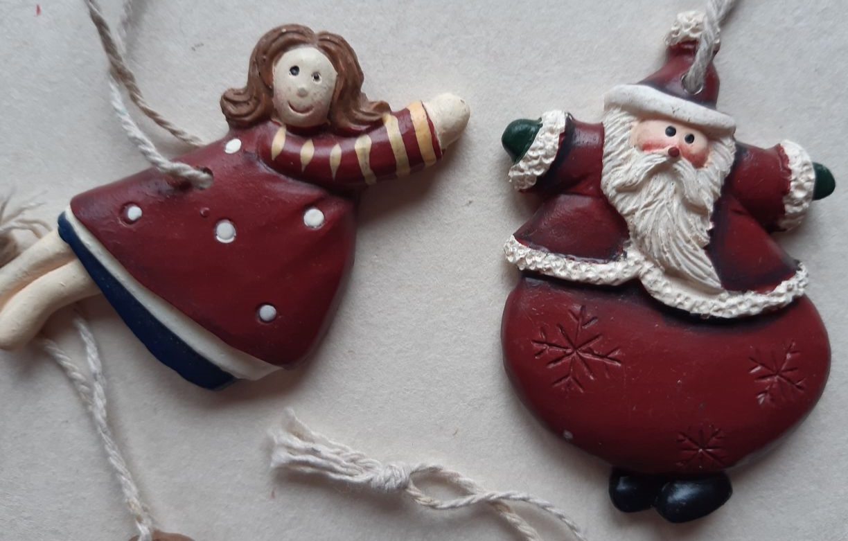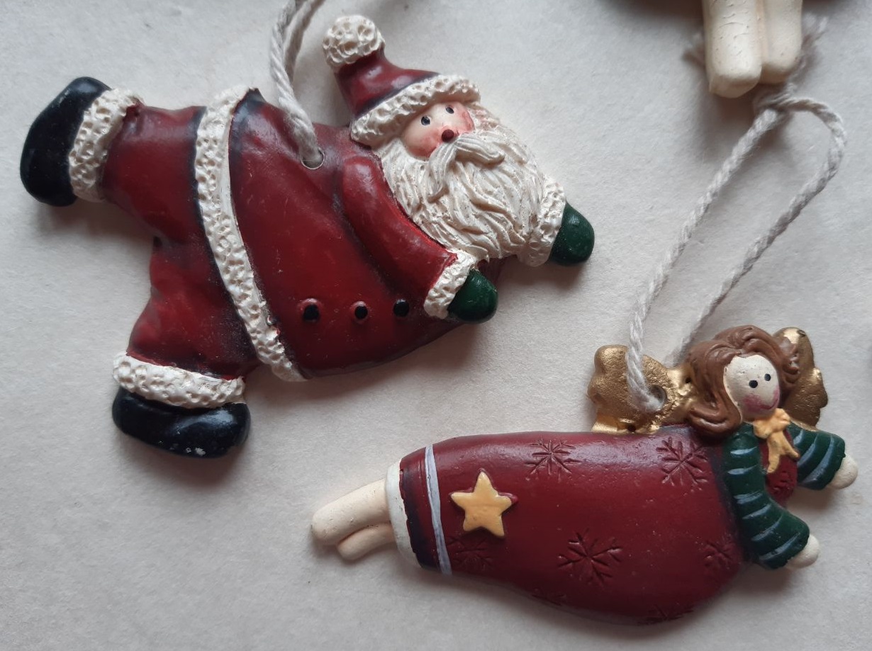 8 hübsche Keramikanhänger in verschiedenen weihnachtlichen Motiven, für Dekoration von Gestecken, Sträußen, Tannenbaum und Geschenken